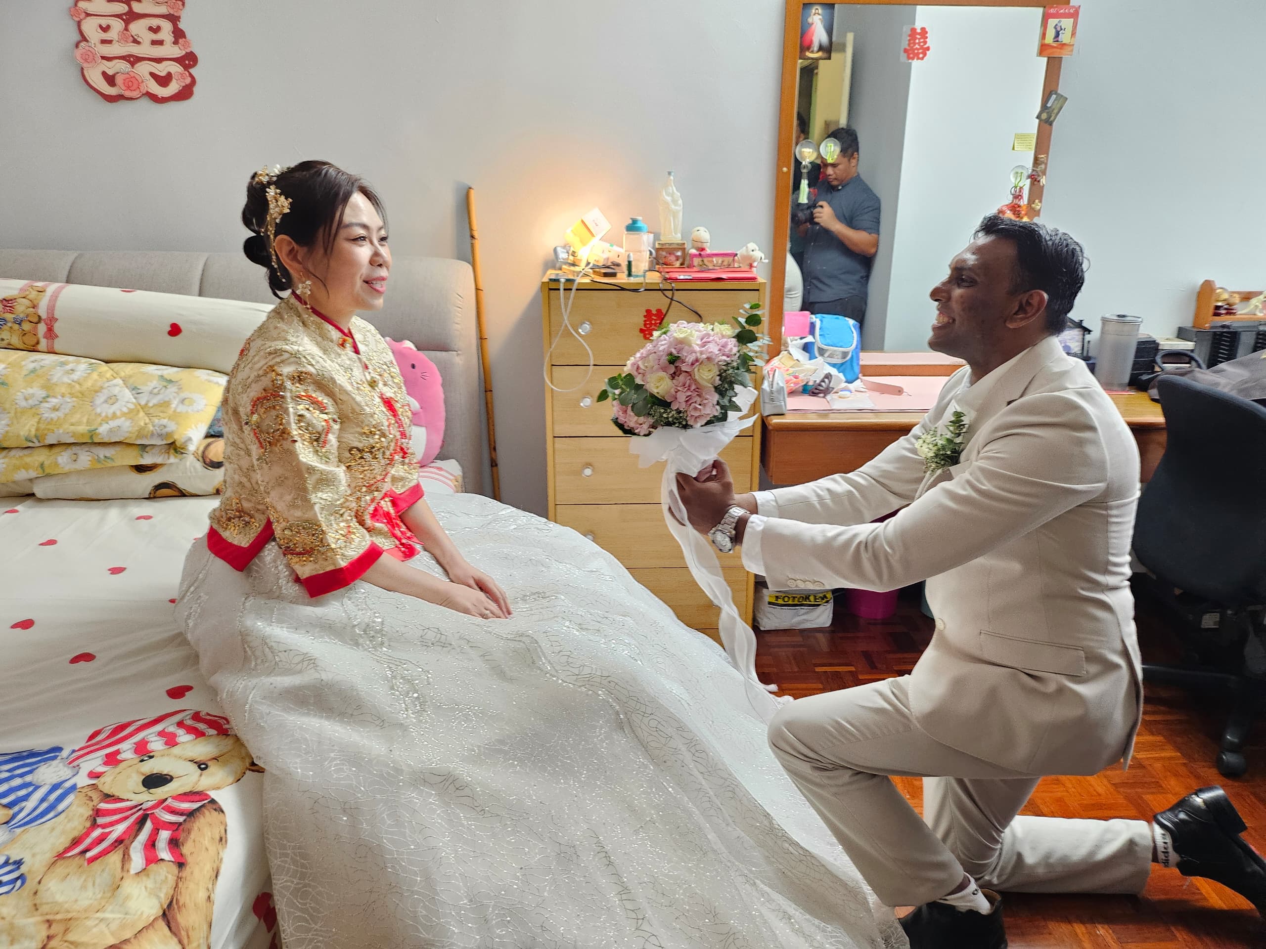 Francis have to leave his home at 7am and be at the bride’s at 7.30am. There was a slight delay and he only managed to arrive 10 minutes late! And games starts immediately.